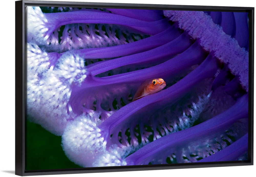<p>Small fish hiding in a sea pen (Virgularia sp.). Sea pens are colonial organisms related to sea feathers. Photographed off the coast of Rinca Island, Indonesia.</p>