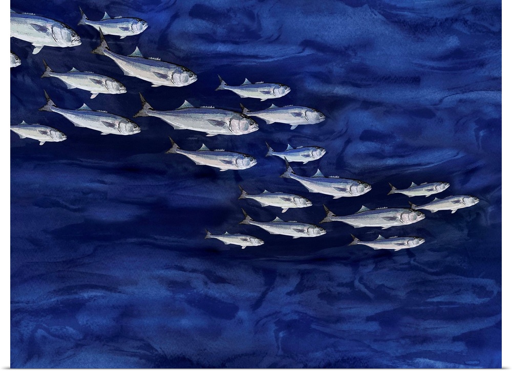 Abstract Art Blue Wall Art Contemporary Art Alex Hanson Painting Wildlife Marine Life Fish