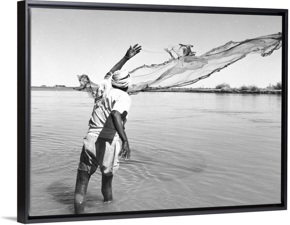 <p>A Sudanese fisherman trapping catfish in the muddy waters near Khartoum Original Publication: Picture Post - 5638 - Sanders Of The River - pub 1951</p>