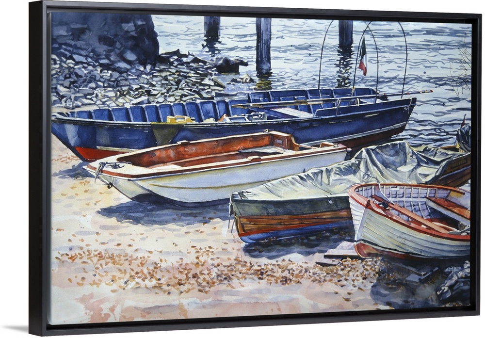 Art Traditional Contemporary Art Stan Myers Painting Lake Como Transportation Boat Watercolor