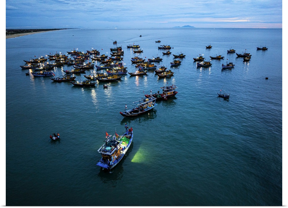 <p>Fishing boat at dusk, Tam Tien, Quang Nam Province, Central Vietnam.</p>