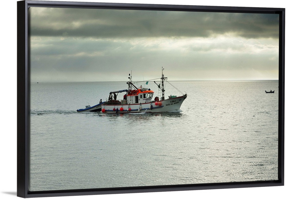 <p>Fishing boat going to the sea. Setubal, Portugal</p>