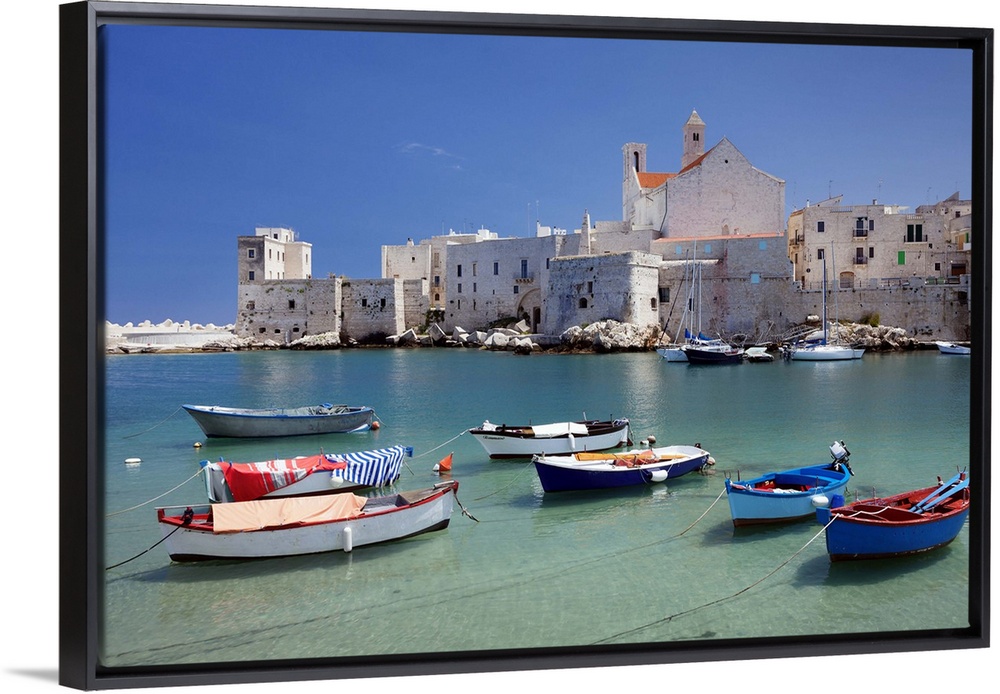 <p>Fishing boats at the harbour, old town with cathedral, Giovinazzo, Bari district, Puglia, Italy, Mediterranean, Europe</p>