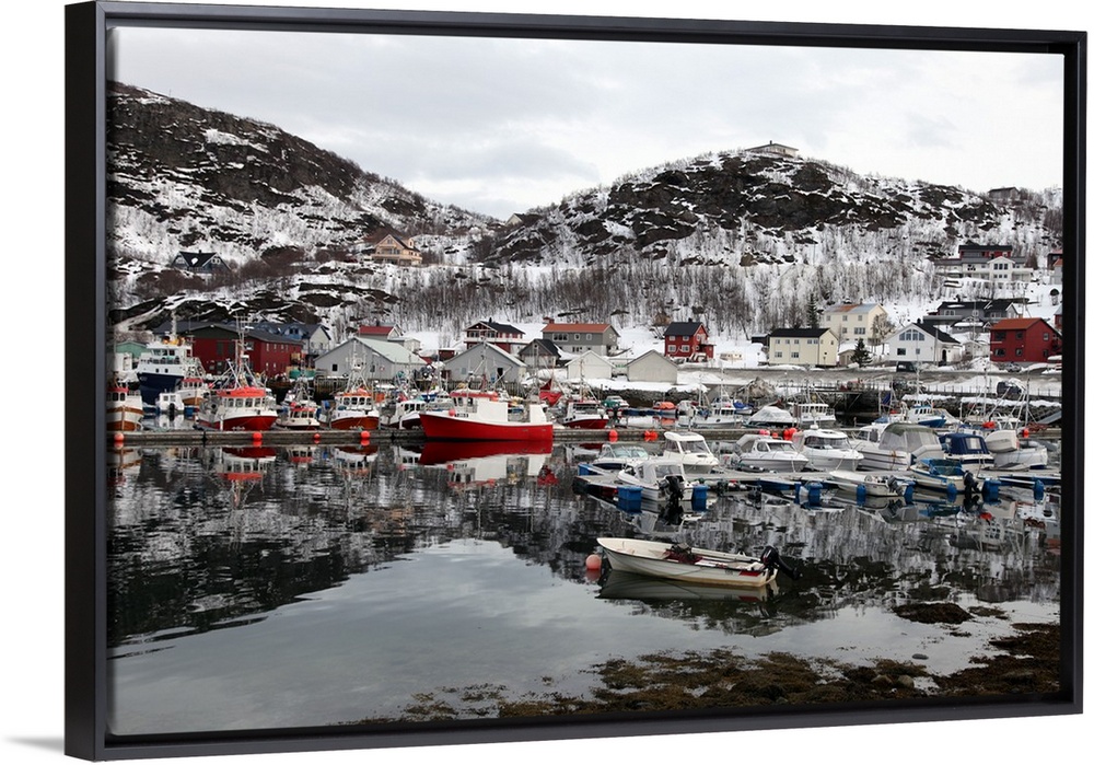 <p>Fishing boats in the harbour at Skjervoy, Troms, Norway, Scandinavia, Europe.</p>