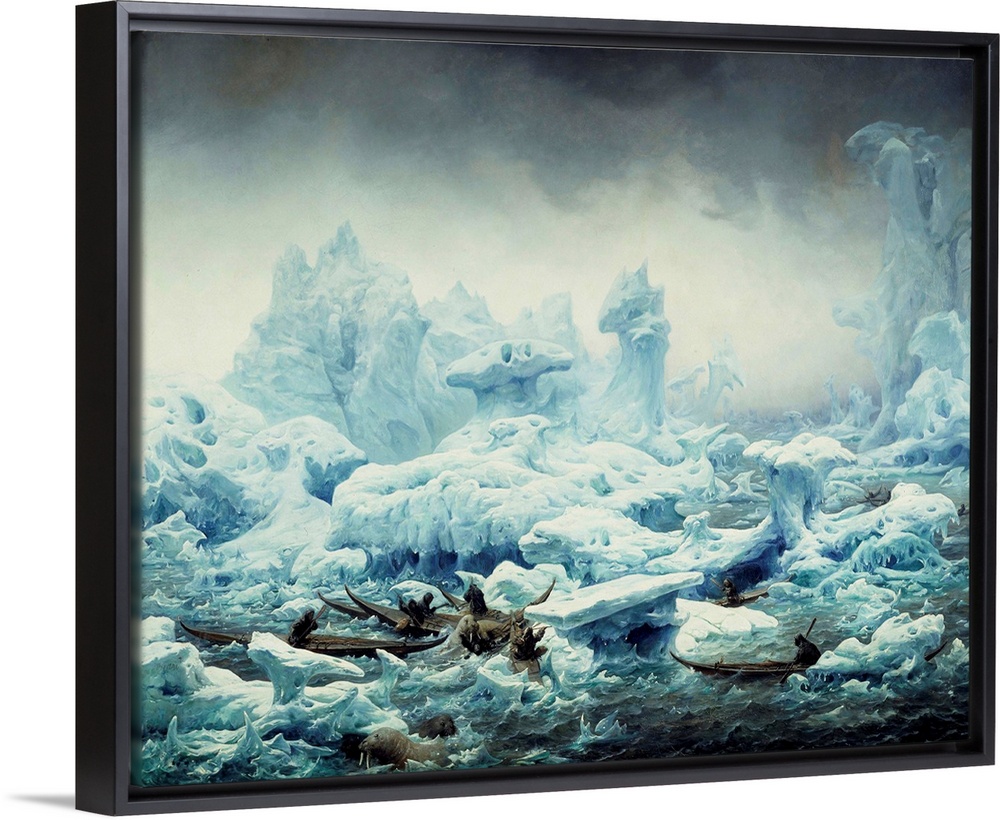 <p>Fishing for Walrus in the Arctic Ocean. View of the Polar sea, Greenlanders hunting walrus. Painting by Francois Auguste Biard (1799-1882), 1841. 1,3 x 1,63 m. Castle Museum, Dieppe, France</p>
