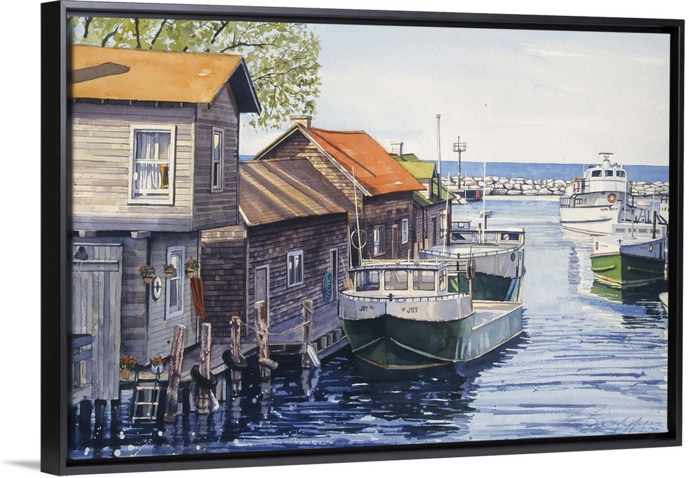 Art Coastal Cityscapes Contemporary Art Harbor Stan Myers Painting Transportation Boat Watercolor