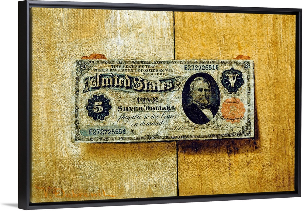 <p>Victor Dubreuil (American, b. 1846), Five Dollar Bill, c. 1885, oil on canvas, Phillips Collection, Washington, D.C.</p>