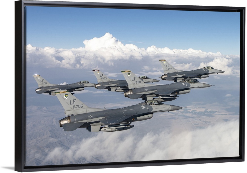 <p>Five F-16Cs of the U.S. Air Force 310th Fighter Squadron fly in formation.</p>