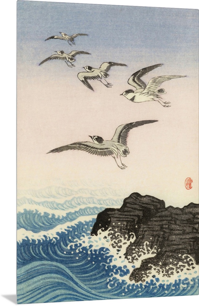 <p>Five Seagulls Above a Rock in the Sea by Japanese artist Ohara Koson, 1877 - 1945. Ohara Koson was part of the shin-hanga, or new prints movement.</p>