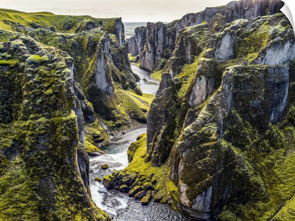 <p>Fjadrargljufur is a magnificent and massive canyon, about 100 meters deep and about two kilometres long. The canyon has sheer walls; Skaftarhreppur, Southern Region, Iceland.</p>