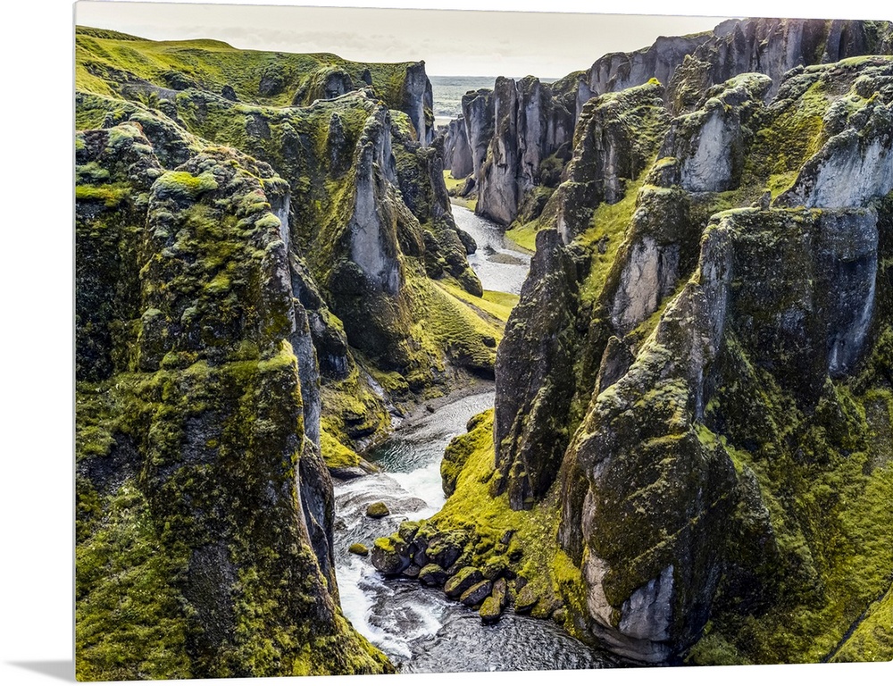 <p>Fjadrargljufur is a magnificent and massive canyon, about 100 meters deep and about two kilometres long. The canyon has sheer walls; Skaftarhreppur, Southern Region, Iceland.</p>