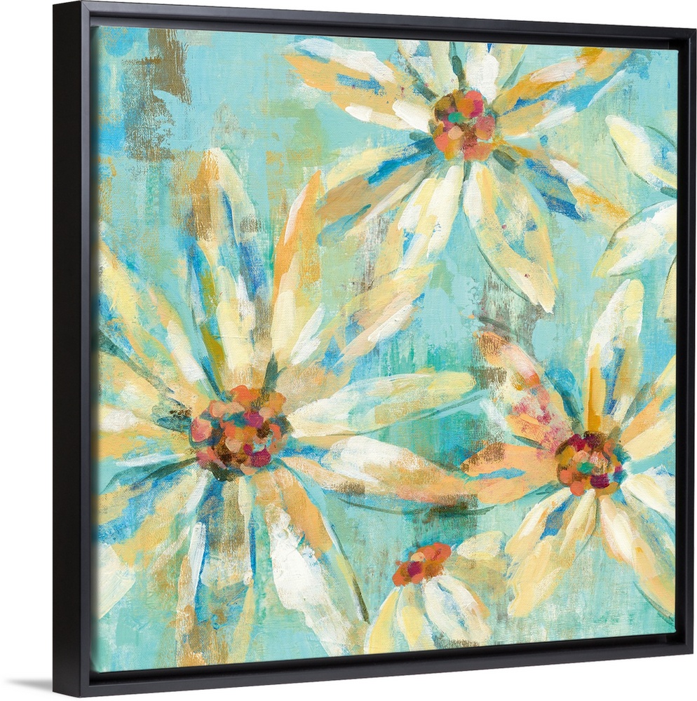 Art Blue Wall Art Aqua Plants and Flowers Decorative Art Florals Daisy Painting Silvia Vassileva