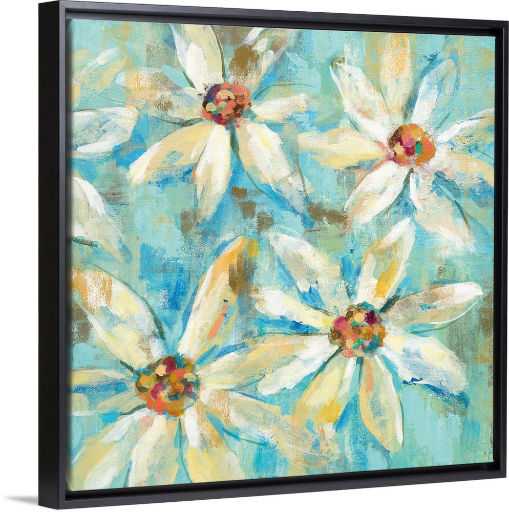 Art Transitional Blue Wall Art Plants and Flowers Decorative Art Florals Daisy Painting Silvia Vassileva