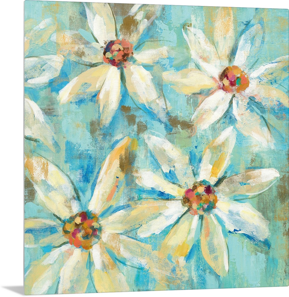 Art Transitional Blue Wall Art Plants and Flowers Decorative Art Florals Daisy Painting Silvia Vassileva