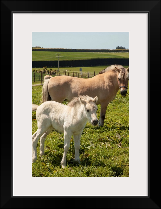 <p>Norwegian fjord horse, mare and foal, rare horse breed, only breeding stud in New Zealand, Timaru</p>