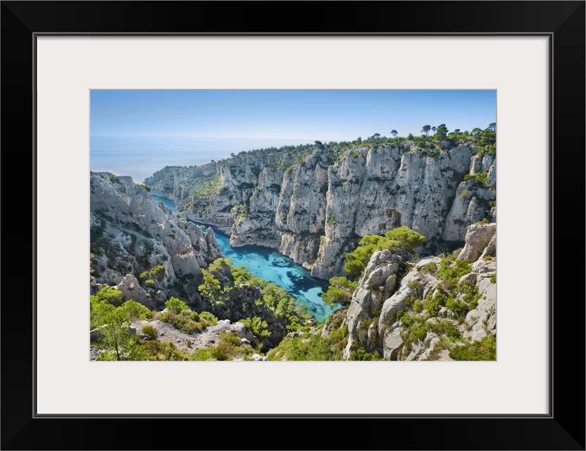 <p>Fjord landscape in the Calanques. France, Provence-Alpes-Cote d'Azur, Bouches-du-Rhone, Cassis, Calanque d'en Vau. Cote d'Azur, Calanques. Cote D'Azur, Western Europe, France.</p>