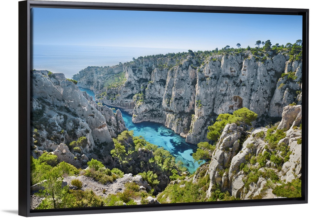 <p>Fjord landscape in the Calanques. France, Provence-Alpes-Cote d'Azur, Bouches-du-Rhone, Cassis, Calanque d'en Vau. Cote d'Azur, Calanques. Cote D'Azur, Western Europe, France.</p>