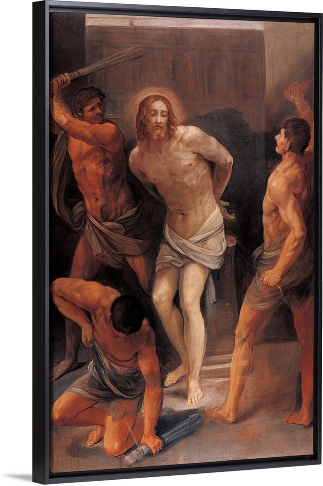 <p>The Flagellation of Christ, by Guido Reni, 1640 - 1642, 17th Century, oil on canvas, cm 280 x 180 - Italy, Emilia Romagna, Bologna, National Picture Gallery. The figure on the right side is incomplete. All. Flagellation flogging scourged Christ tyrants sc</p>