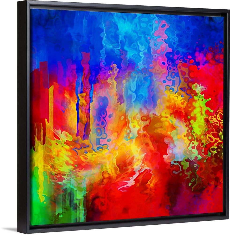 <p>Square abstract art with bright colors and circular shapes.</p>