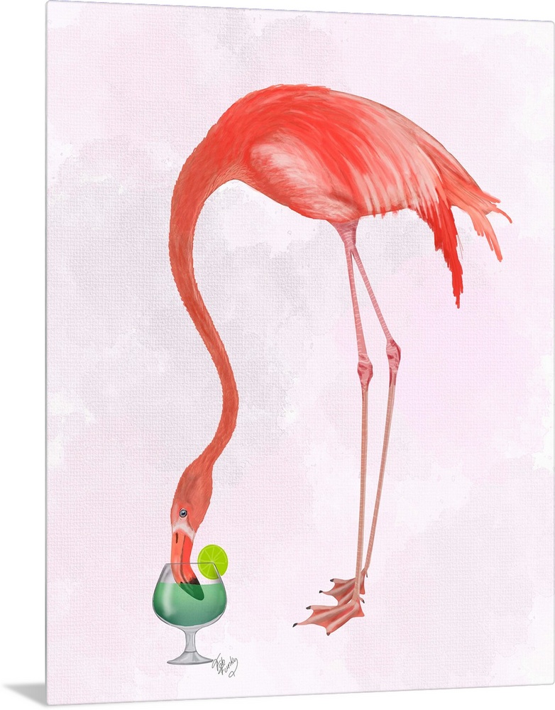 Art Decorative Art Food and Drink Drinks Cocktails Fab Funky Graphic Art Painting Pink Wall Art Wildlife Bird Flamingo