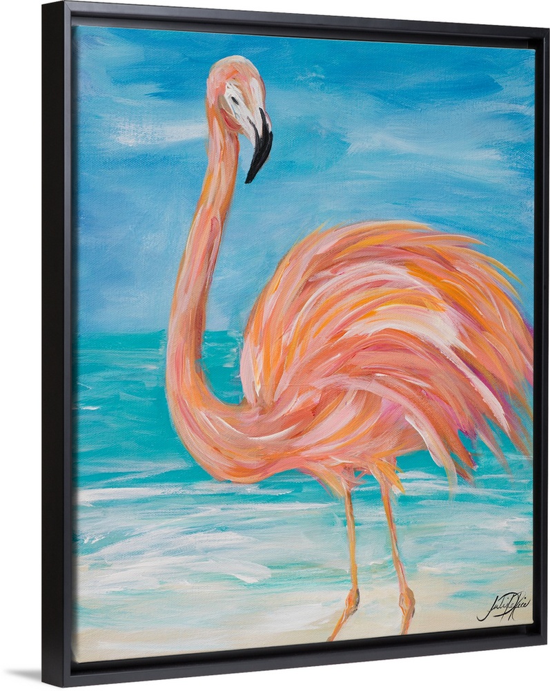 Art Blue Wall Art Decorative Art Julie DeRice Painting Wildlife Bird Flamingo