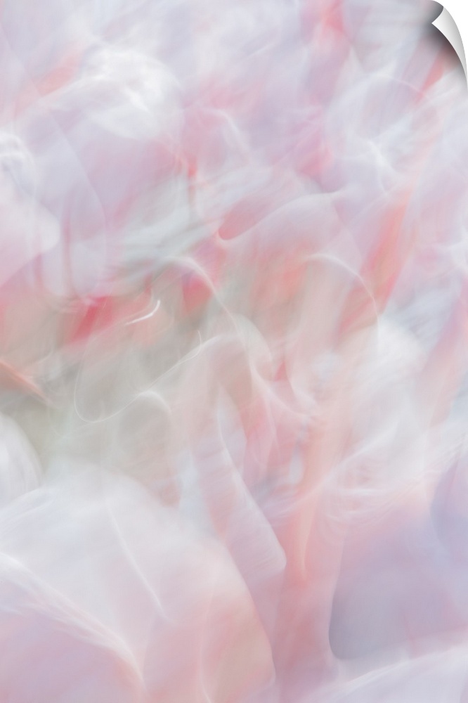 <p>Abstract photo of a cluster of flamingos that has been edited to illustrate a motion blur effect.</p>