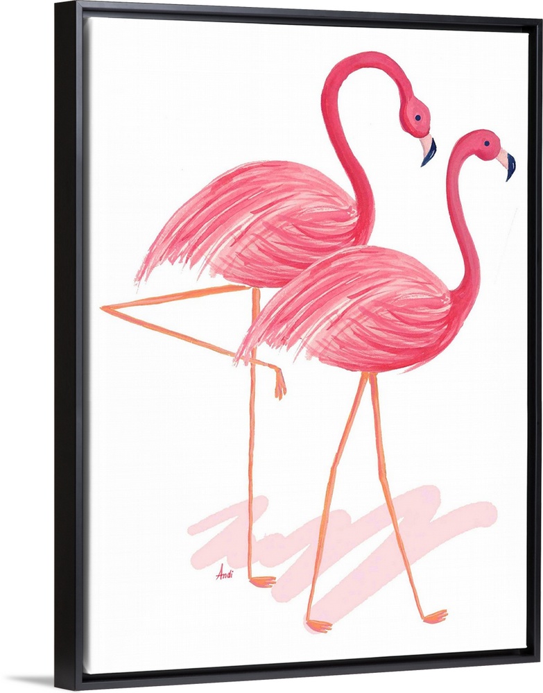 Art Decorative Art Andi Metz Painting Pink Wall Art Watercolor Wildlife Bird Flamingo