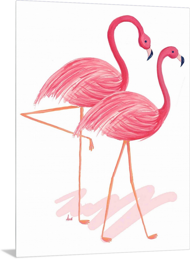 Art Decorative Art Andi Metz Painting Pink Wall Art Watercolor Wildlife Bird Flamingo