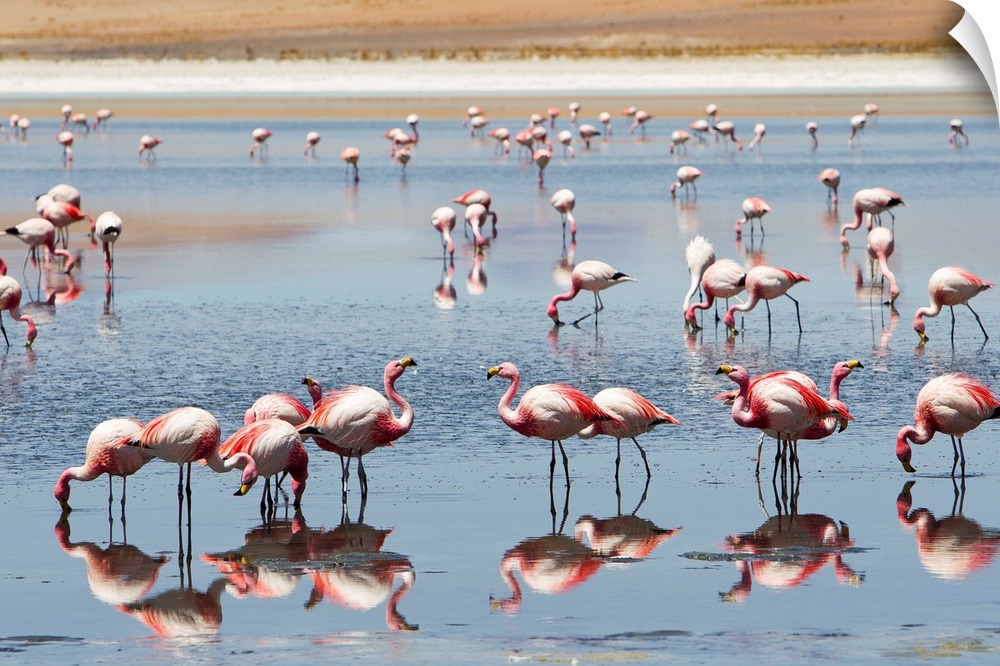 <p>Flamingos feeding at a lagoon in Bolivia's southwest altiplano.</p>