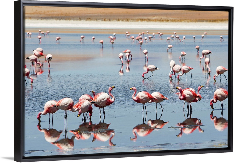 <p>Flamingos feeding at a lagoon in Bolivia's southwest altiplano.</p>