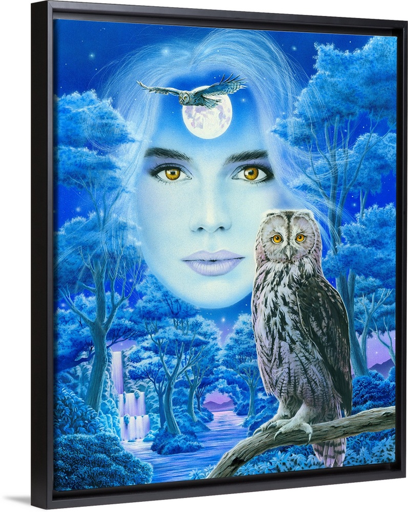 Art Blue Wall Art Fantasy People Wildlife Robin Koni Painting People Wildlife Bird Owl