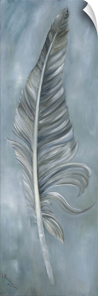 <p>Contemporary painting of a long wispy feather in blue and silver tones.</p>