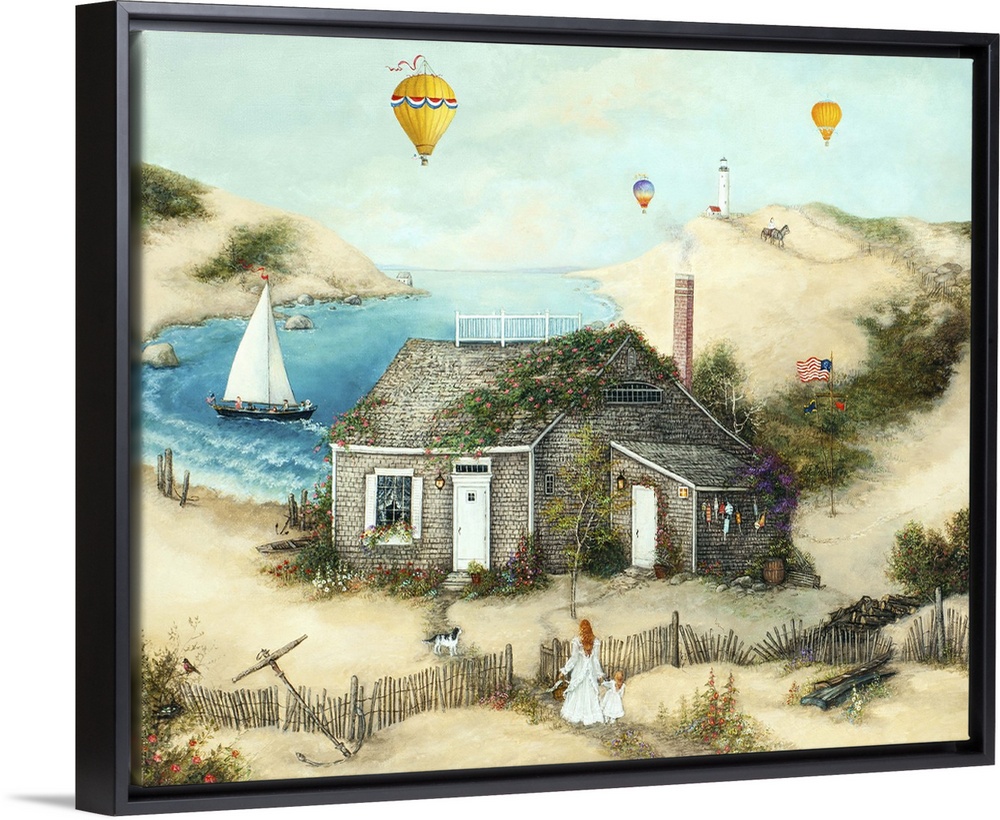 <p>A contemporary painting of a bay side cottage scene.</p>