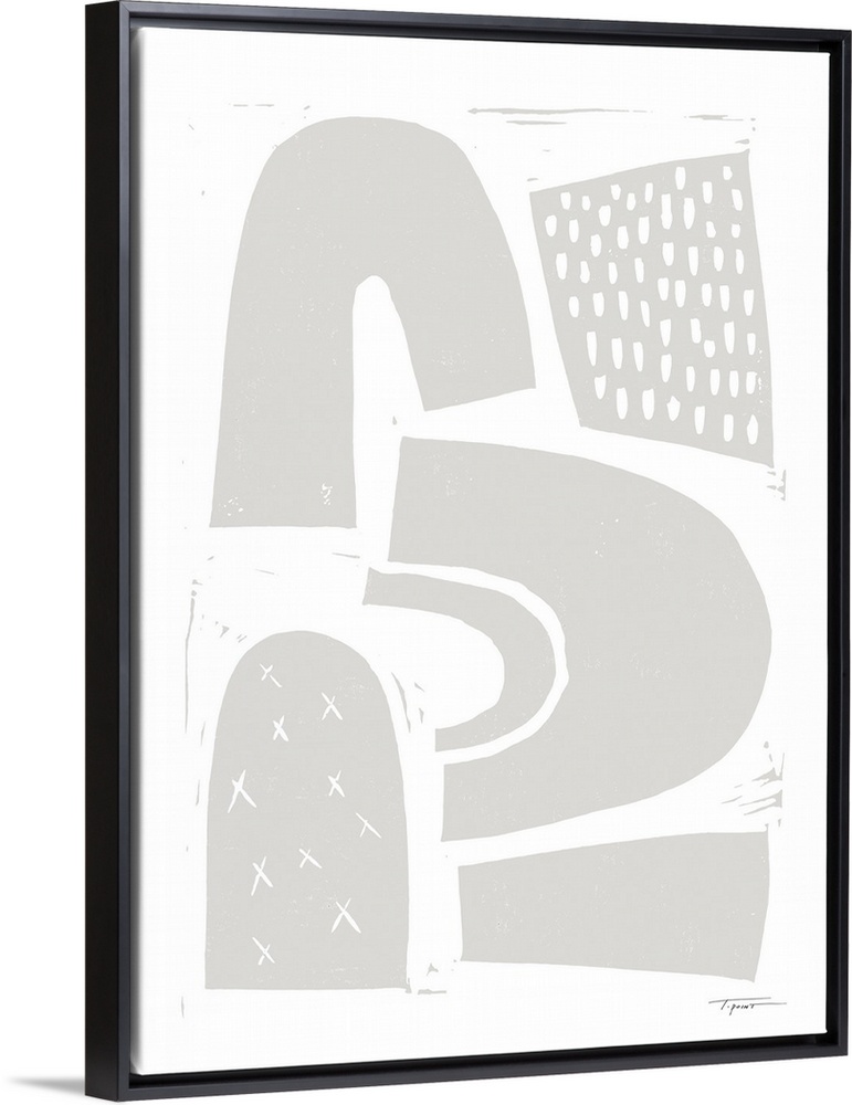 <p>Abstract block print with arches and shapes in light gray.</p>