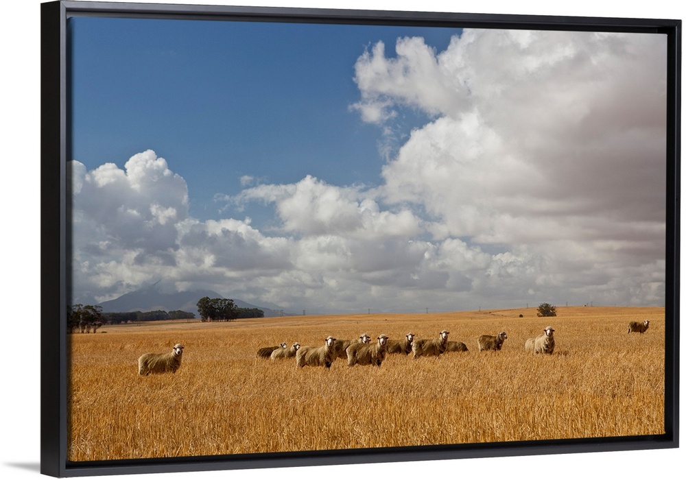 <p>Flock of sheep grazing in farm, Bartholomeus Klip Farm, Hermon, South Africa</p>