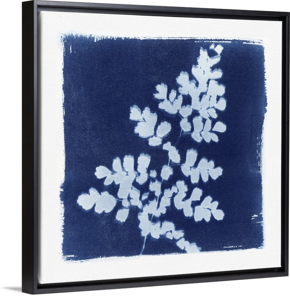 <p>Creative artwork in the style of a cyanotype of a fern with a rough white border.</p>