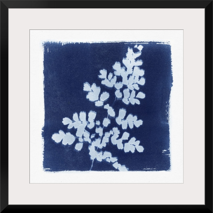 <p>Creative artwork in the style of a cyanotype of a fern with a rough white border.</p>