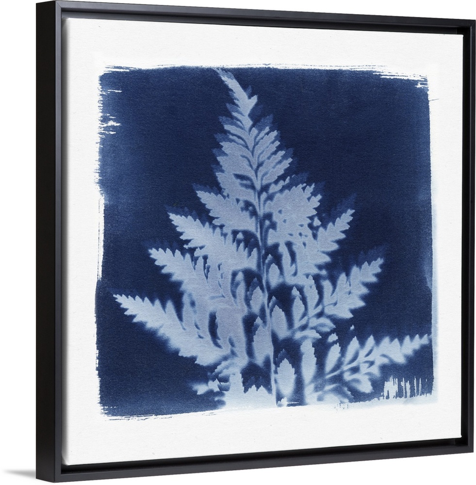 <p>Creative artwork in the style of a cyanotype of a fern with a rough white border.</p>