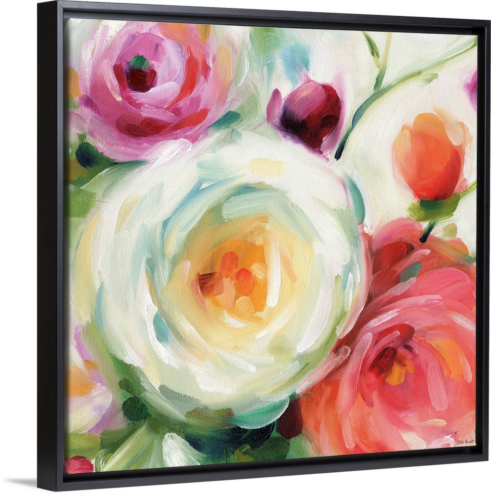 <p>Square contemporary painting of large flower blooms in bold brush strokes.</p>