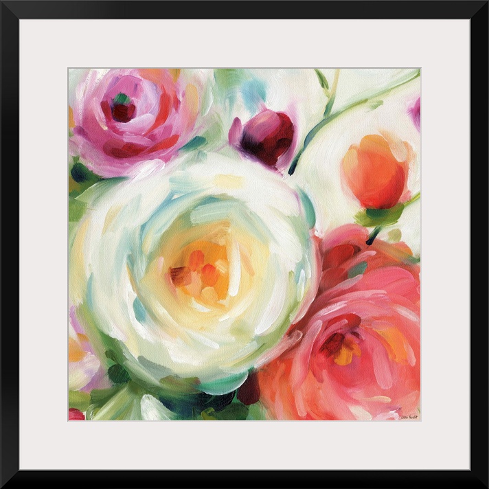 <p>Square contemporary painting of large flower blooms in bold brush strokes.</p>