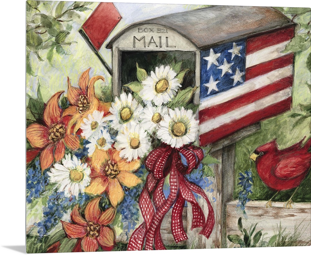 Art Decorative Art American Flag Florals Painting Bird Cardinal Susan Winget