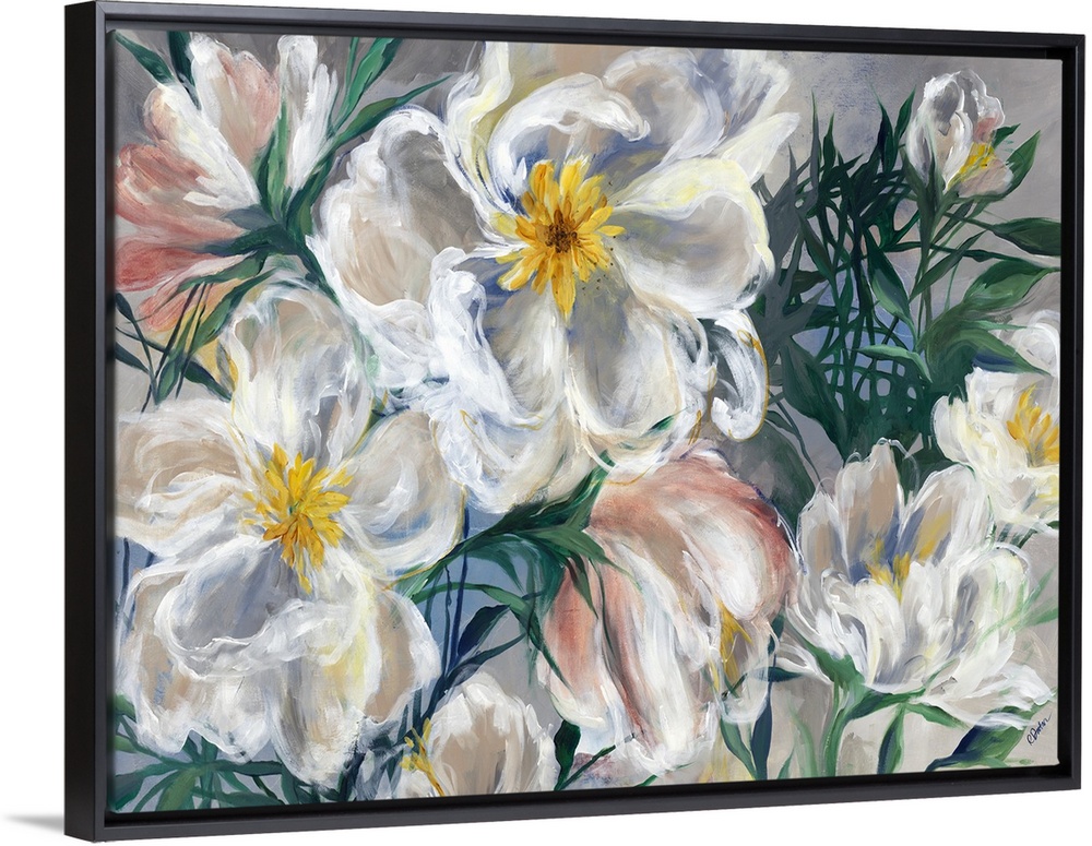 <p>Contemporary painting of a bouquet of white and pink flowers.</p>