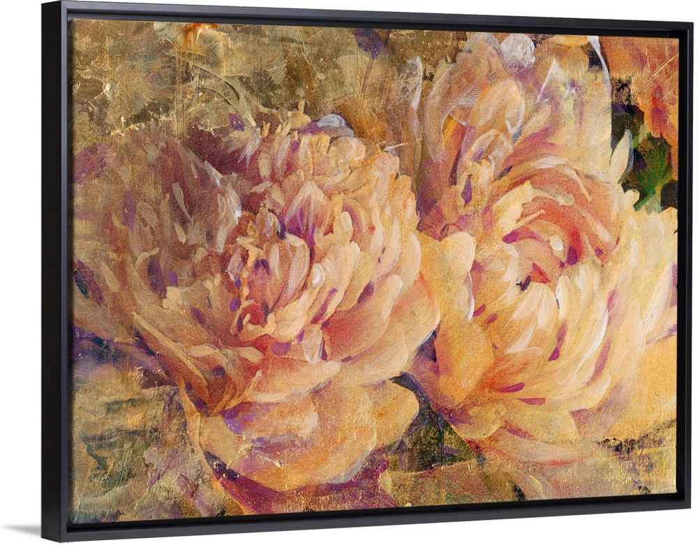 <p>Contemporary artwork of of flowers in bloom, in vintage shades of pink and yellow.</p>