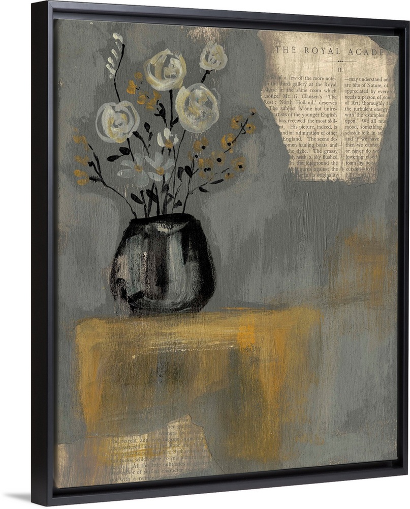 Art Contemporary Art Plants and Flowers Jennifer Goldberger Grey Wall Art Slate Grey Mixed Media Art Still Life