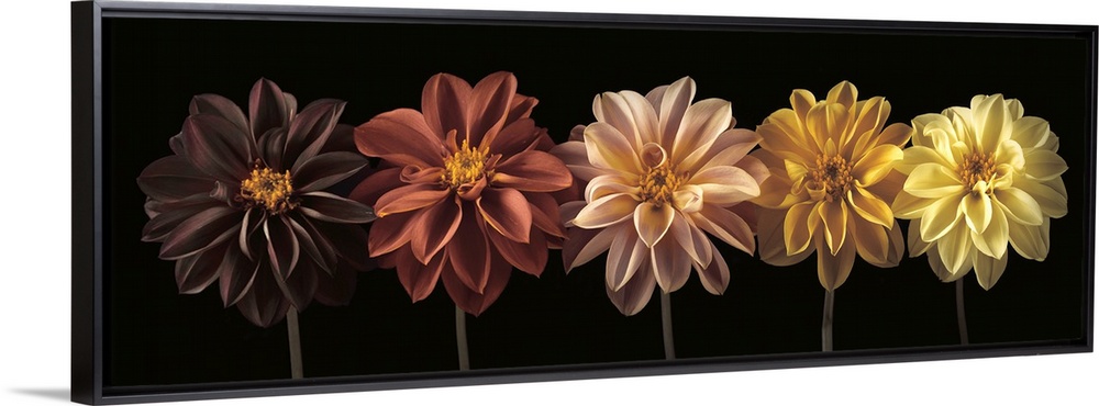 <p>A photo of a row of flowers, from darker to brighter colors.</p>