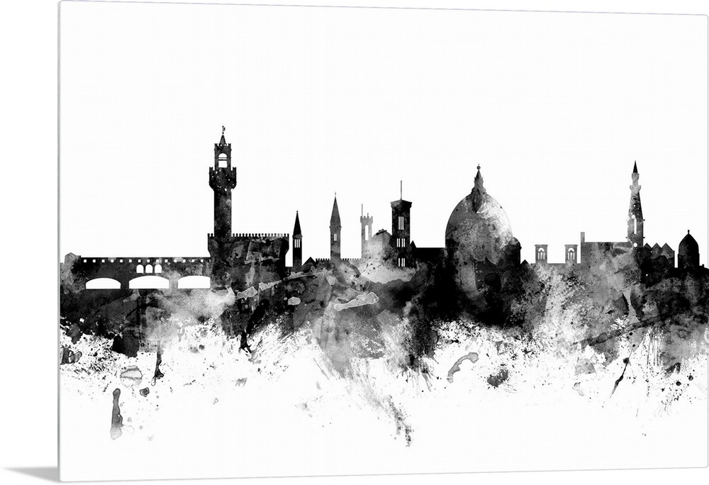 <p>Contemporary artwork of the Florence city skyline in black watercolor paint splashes.</p>