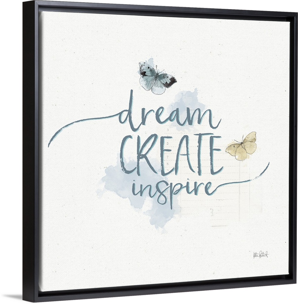 <p>"Dream Create Inspire" written in blue with watercolor butterflies on a textured white background.</p>