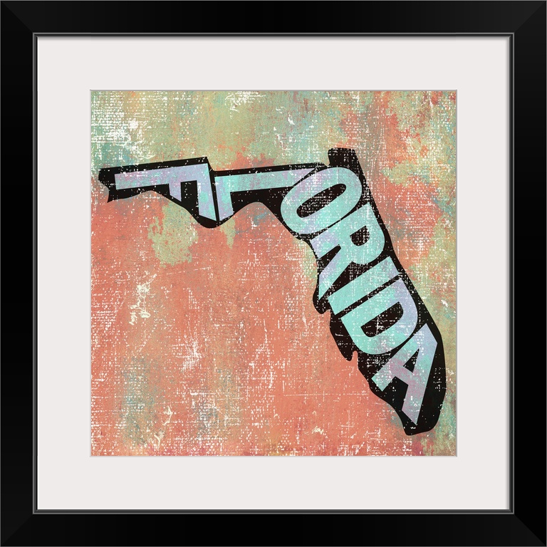 <p>Contemporary typography art of a state outline against a grungy distressed background.</p>