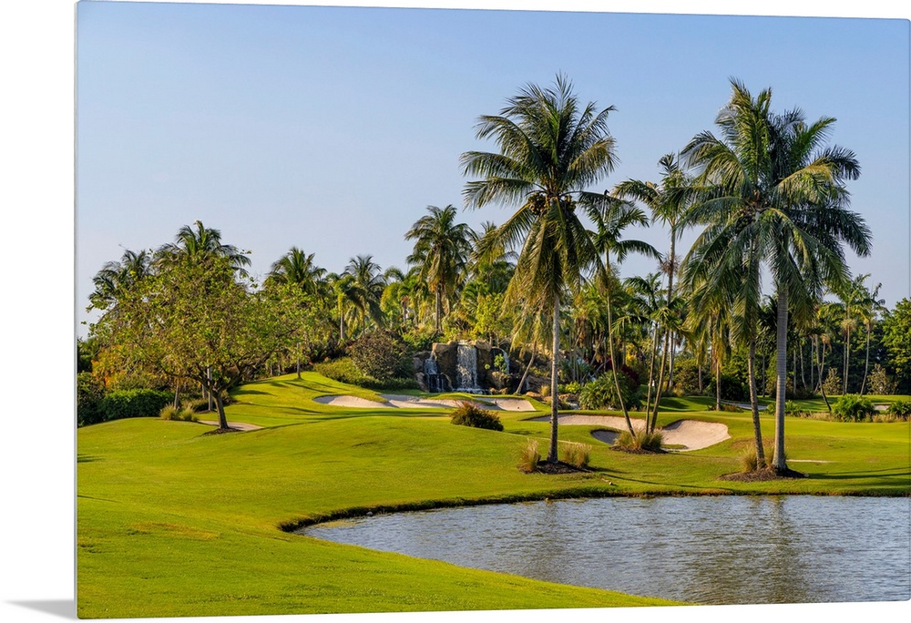 <p>Florida, Boca Raton, golf course with palm trees.</p>