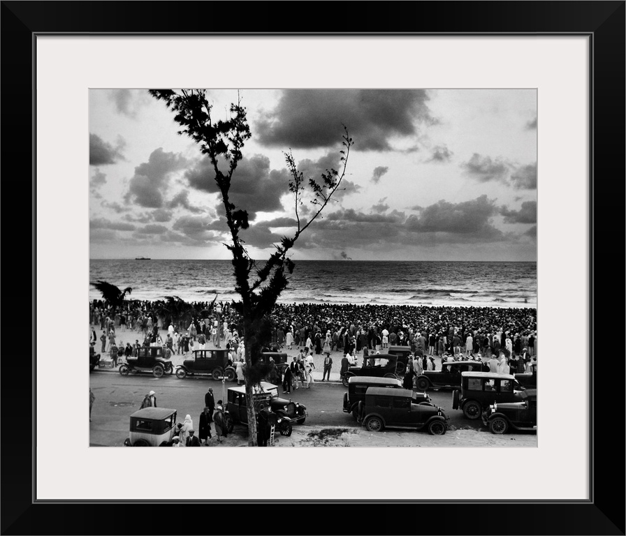<p>People gather at sunrise at Miami Beach, Florida, 1927. Photograph likely taken on 17 April 1927, when thousands of people assembled on Easter Sunday to pray for recovery from the Great Miami Hurricane that hit the city in September 1926.</p>